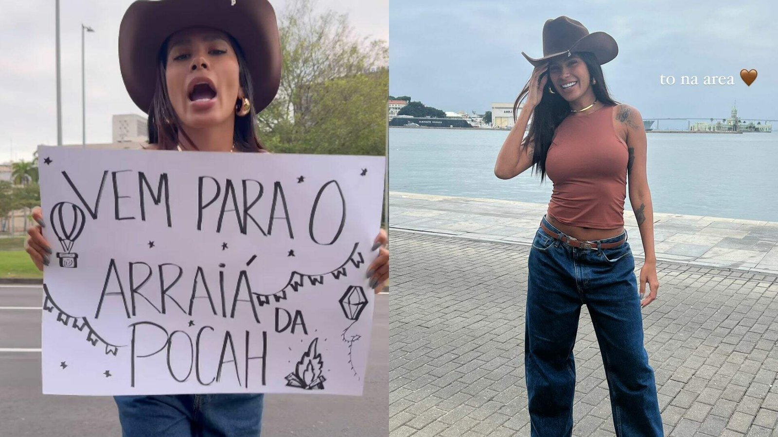 Em outro vídeo, Pocah aparece segurando um cartaz convidando todos para o evento: “Vem para o arraiá da Pocah.” A festa também contará com a participação de Juliette, Marvvila, Xamã e outros artistas.