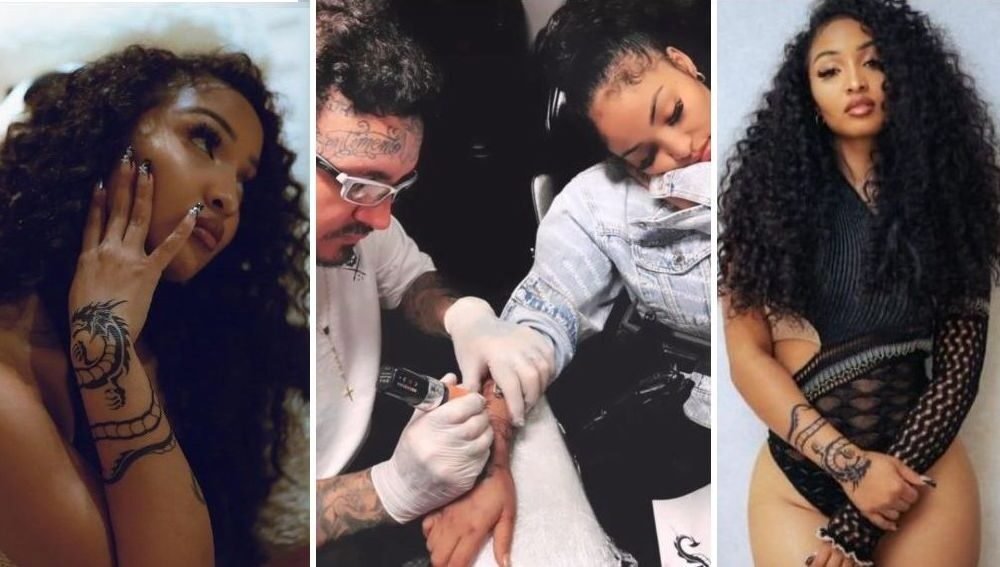 A cantora de jamaicana Shenseea, compartilhou nas redes sociais, a tatuagem de um dragão na mão direita, feita pelo excelente tatuador brasileiro, Rogério Araújo, que vive...