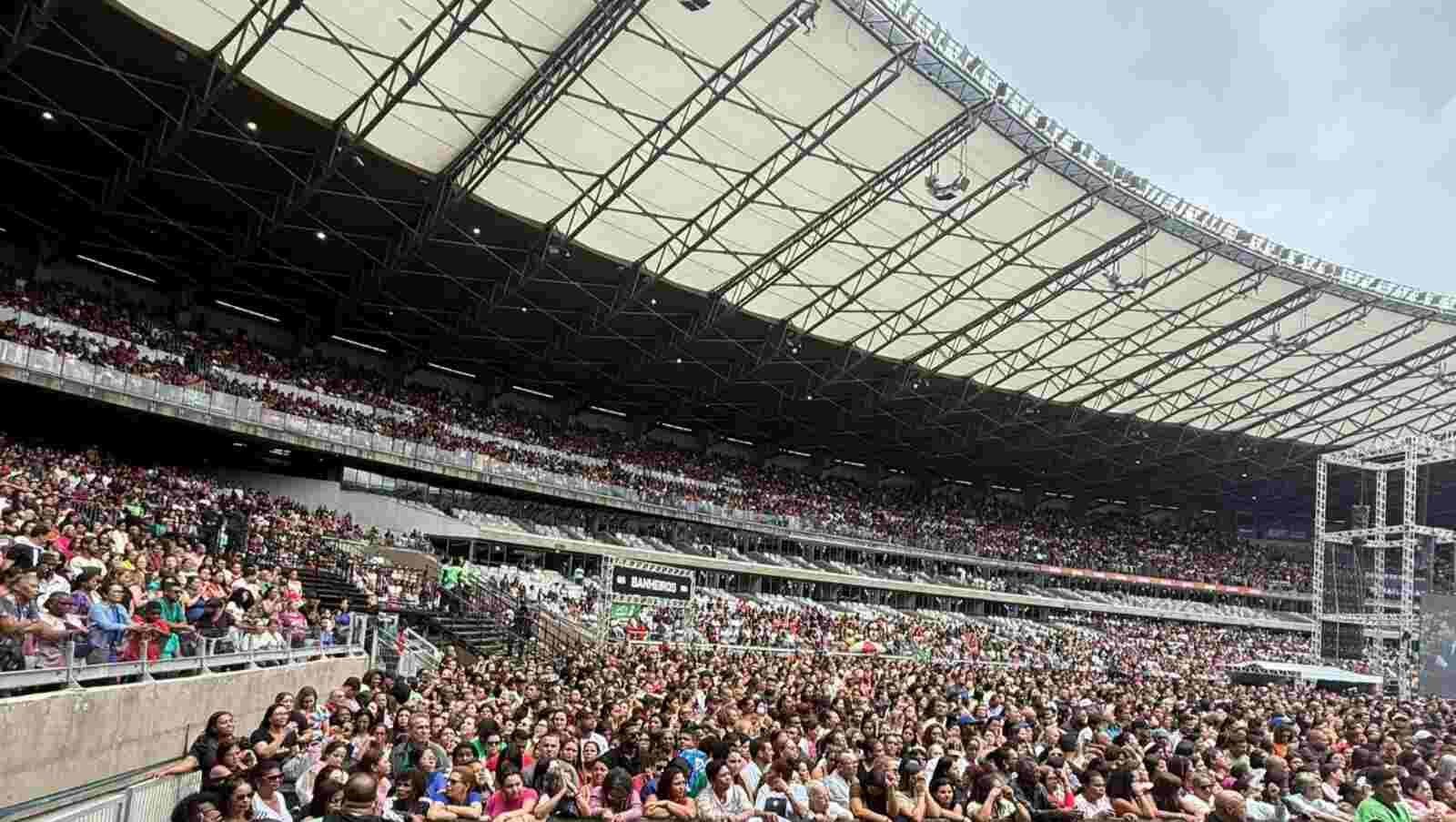 Caravanas vindas de várias partes do Brasil lotaram o estádio, movidas pela fé e pelo desejo de vivenciar um momento de profunda conexão. A organização foi impecável, garantindo que o público participasse de forma segura e confortável.
