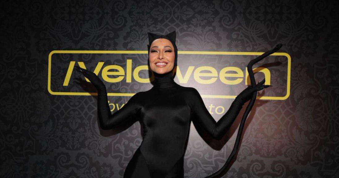 Para o grande momento, ela apostou em um look exclusivo inspirado na Mulher-Gato, criado em parceria com a Velocity e com styling assinado por Pedro Sales. A produção, justa e cheia de atitude, valorizava as curvas e o lado sexy da apresentadora, traduzindo toda a energia e irreverência que são sua marca registrada.