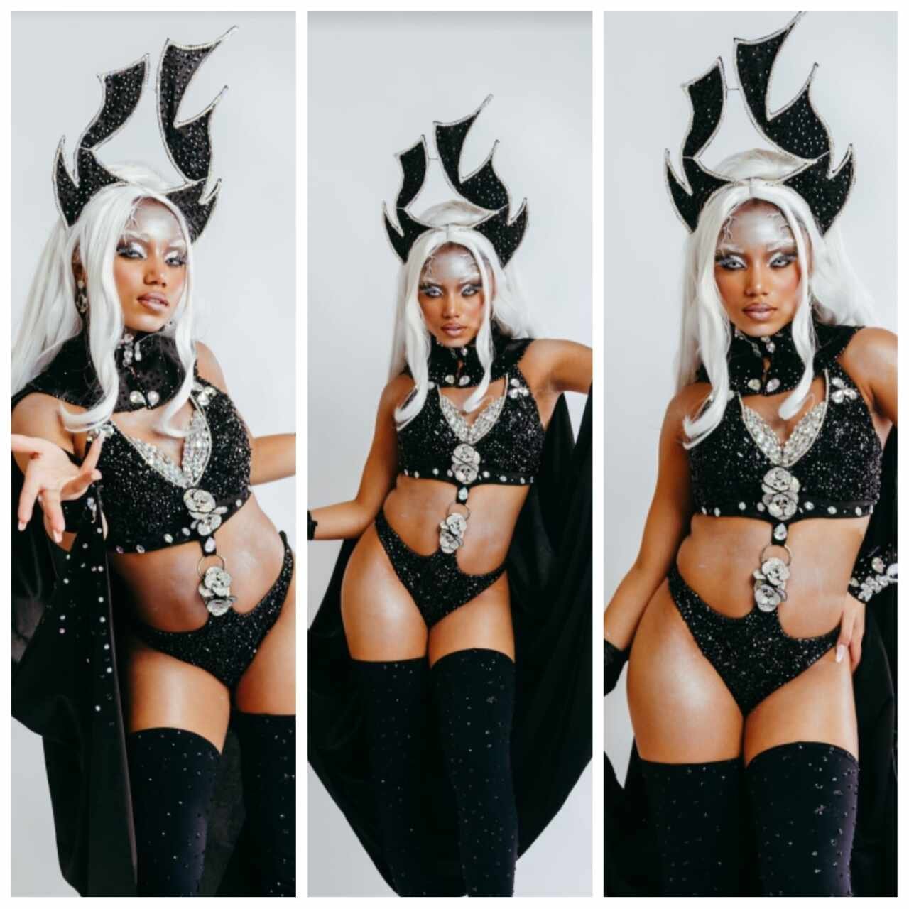 Sobre a criação de sua fantasia, Duda revelou: “Eu escolhi cuidadosamente quais dos icônicos figurinos da Tempestade usar, e o resto ficou nas mãos das meninas incríveis do Atelier Estilo Fashion. Elas têm uma habilidade absurda, principalmente quando se trata de fantasias e produções para o Carnaval. Queríamos algo cheio de brilho, digno de toda a presença e poder da Tempestade, e claro, com todos os detalhes marcantes da personagem: look, cabelo, lentes, capa, bota.”